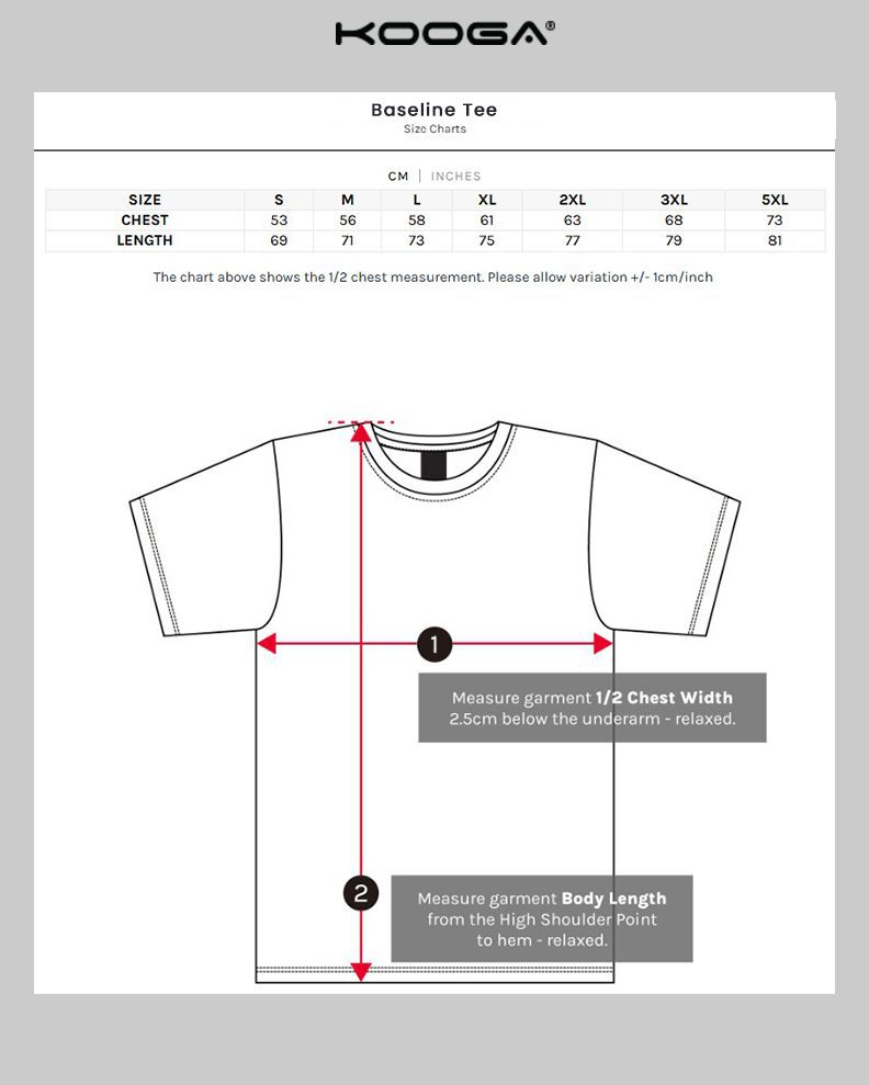 Baseline Tee Size Chart